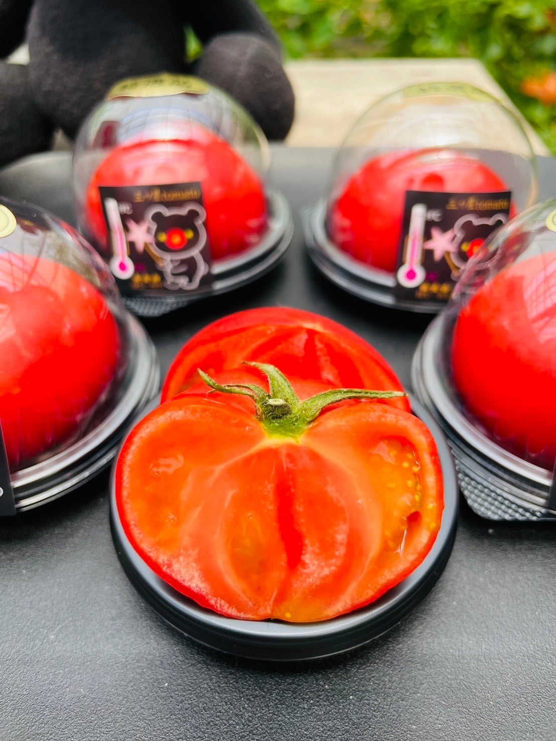 和炭トマトは土壌微生物を活性化して有機肥料の分解を促進するとともに、イオン交換効率を高めることで植物がより栄養を吸収しやすくなるというねらいのもと、土壌改良に炭を大量に投入する農法で育てたトマト果実です。
